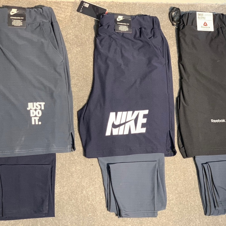 شلوارک لگ دار ورزشی مردانه در ۳ رنگ طوسی مشکی و سرمه ای طوسی و مشکی تمام