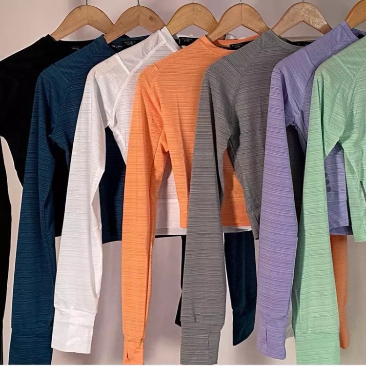 تیشرت کراپ زنانه نیم تنه آستین بلند شصتی دار