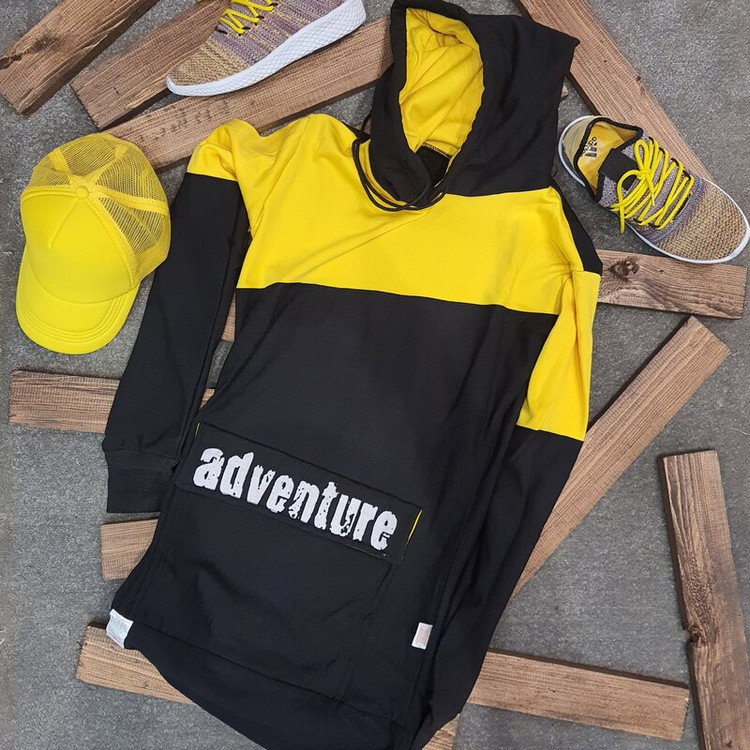 هودی زنانه adventure (زرد و مشکی) جنس: نخ پنبه در دو سایز لارج و مدیوم